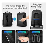 Large main compartment that can hold 1-2 days' worth of clothes, Digital partition can fit a 15.6" laptop and a 9.7" iPad. Other features include a side water bottle pocket, front zipper pocket, front side pocket, shoulder strap glasses strap, and shoulder strap card slot